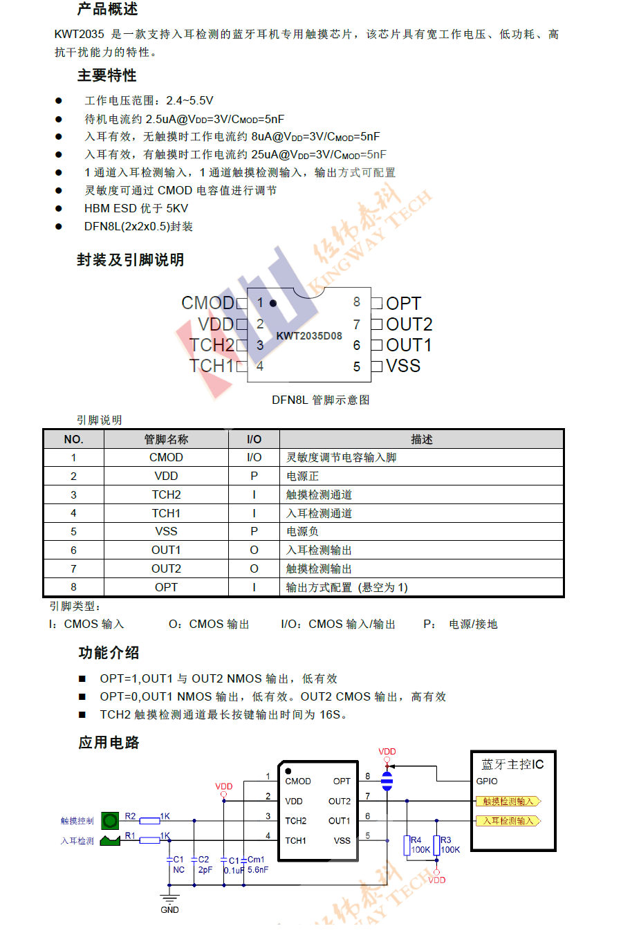 简介:2035-TWS蓝牙耳机双触控双输出IC